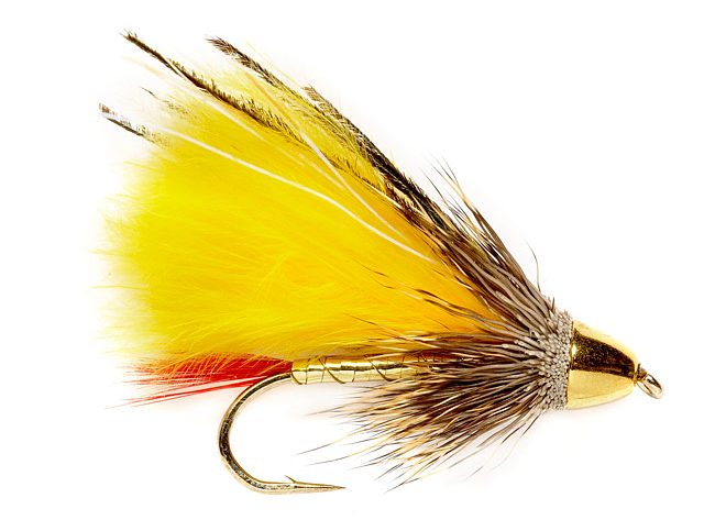In Tuesday’s post, “How to Fish Streamers in the Early Season,” I explained that I prefer flies that have some movement of their own, like ones with marabou and rabbit fur, because they work best and have the best action when you’re fishing them slow. Flies with brass (or even better tungsten) beads get the fly deeper in a hurry, and color does not seem to be that important—although black in dirty water and white or yellow in clear water seem to offer some advantage. Change colors if you don’t get any strikes but don’t worry too much about pattern, size, or color. A size 6 or 8 fly that wiggles in the current should work fine. Here are my 7 go-to streamers for high, cold water:
