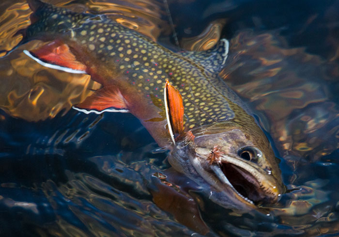 We walked around the southern shore, quickly spotted two brook trout lounging in the shallows, and after two casts we had two fish on. Partly due to laziness and partly due to the sheer joy of watching fish strike surface targets, we only used dry flies. After experimenting a bit, we quickly determined that simple Elk-Hair Caddis and larger mayfly patterns worked with equal effectiveness. These were hungry and eager high-altitude char, not discerning spring-creek trout. The excitement of sight casting to cruising brookies in the clear water was addicting, and soon we’d each caught a dozen fish, then twenty, then thirty. Finn couldn’t believe how many fish were in the lake and how much fun it was watching them smash his fly. We laughed, we cheered each other on, we leap-frogged fishing holes, and we slowly circled the lake. We even fished right through the fiercest hail storm I’d ever witnessed in my life, and surprisingly the fish continued to hit our dry flies even when the surface of the water boiled like a witch’s cauldron.