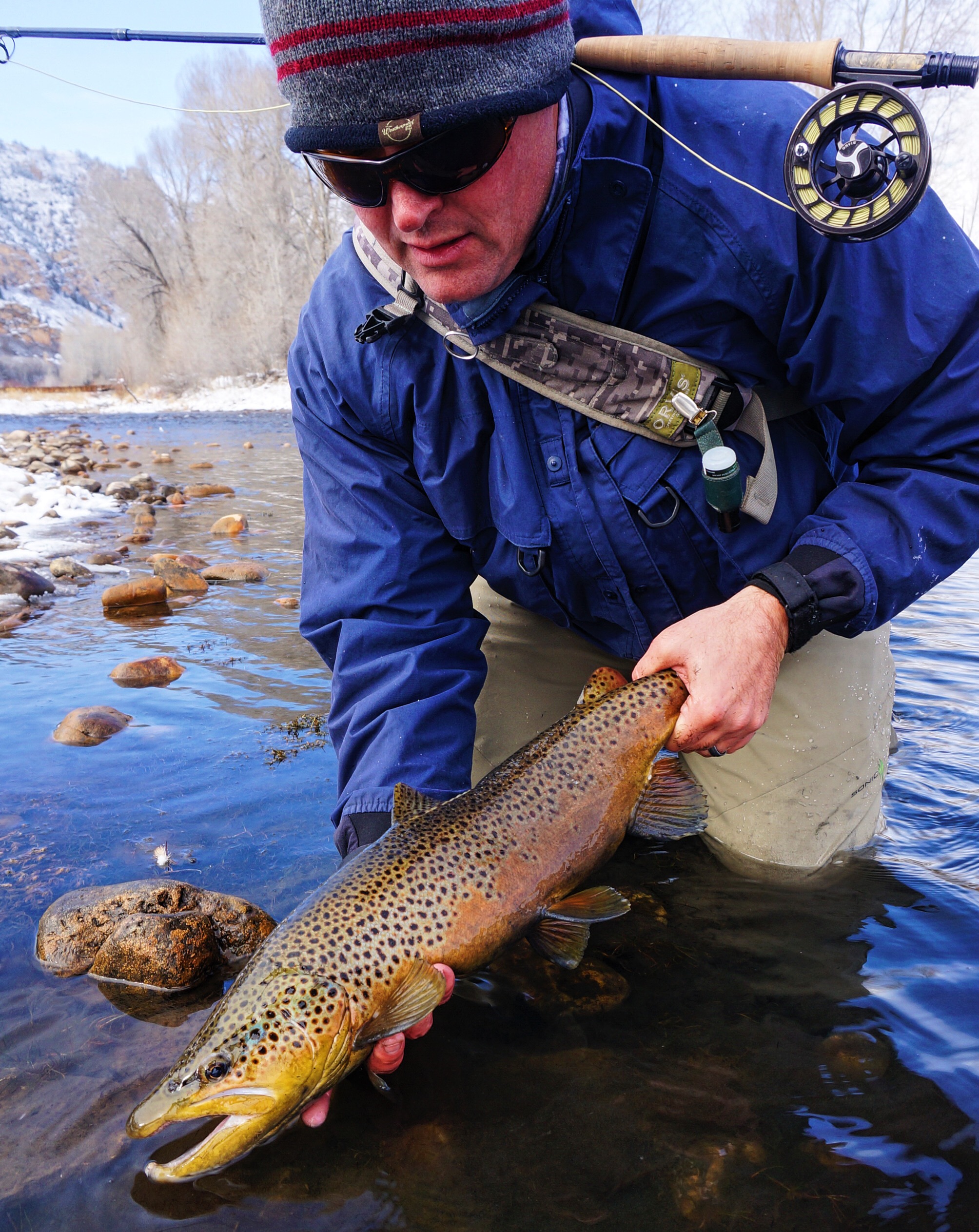 The first fish was an incredible brown. It put up a good fight and finally made its way to the net. A nice healthy 24″ brown. The next few fish were incredible as well and it didn’t even matter that it was cold. We didn’t have time to think about it.