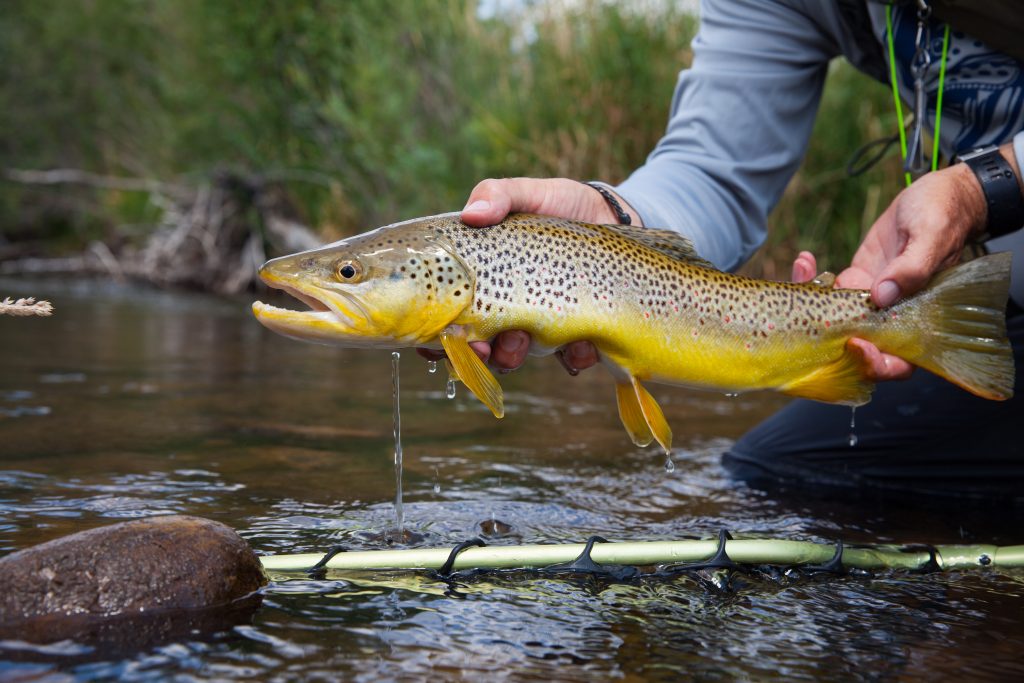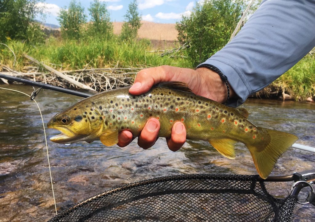 The higher up we got on the river we started to see more browns. The next hour or so was mainly browns. Kind of what we had expected. Then we realized that there were a lot of rainbows here. We then got into another group of bows in the next riffle above a log jam. Most of the browns we caught were on dry flies and the bows were on the nymphs. We wanted to cover as much water as possible so we were both fishing dry droppers. Big dries were the ticket on this day. The fish couldn’t resist the Chubby Chernobyl. One of our favorite flies to fish.