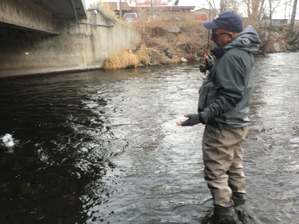 Bryan Eldredge called me and said he was finishing up lunch and had a few hours to fish. We decided to hit the river that runs through town. It literally runs through town. We got there and started at the bridge by one of our favorite restaurants. The fishing can be good but the smell of tacos makes you take that one last cast before moving upstream.
